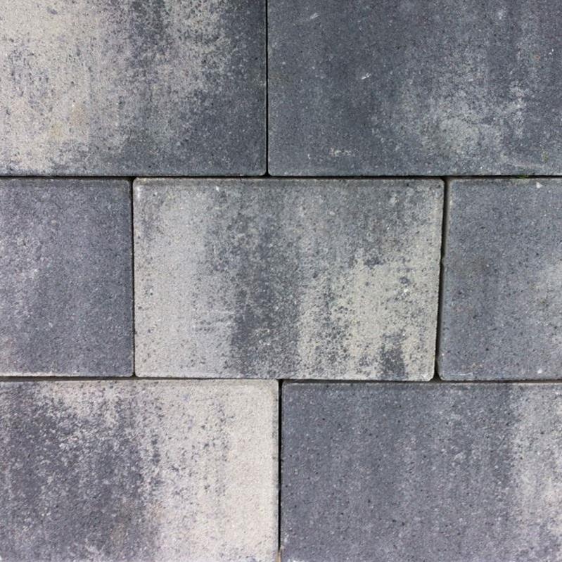 Semmelrock Rettango - kocke za dvorište prošaranih boja, pogodni za raznolike načine popločavanja. Opločnici su sivo-bijelo-crno prošarani.