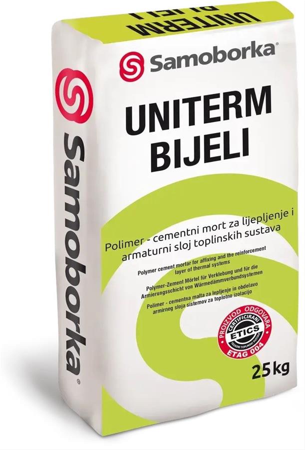 Samoborka Uniterm namijenjen lijepljenju izolacijskih ploča i izradi armaturnog sloja kod izvedbe povezanih sustava za vanjsku toplinsku izolaciju ETICS.