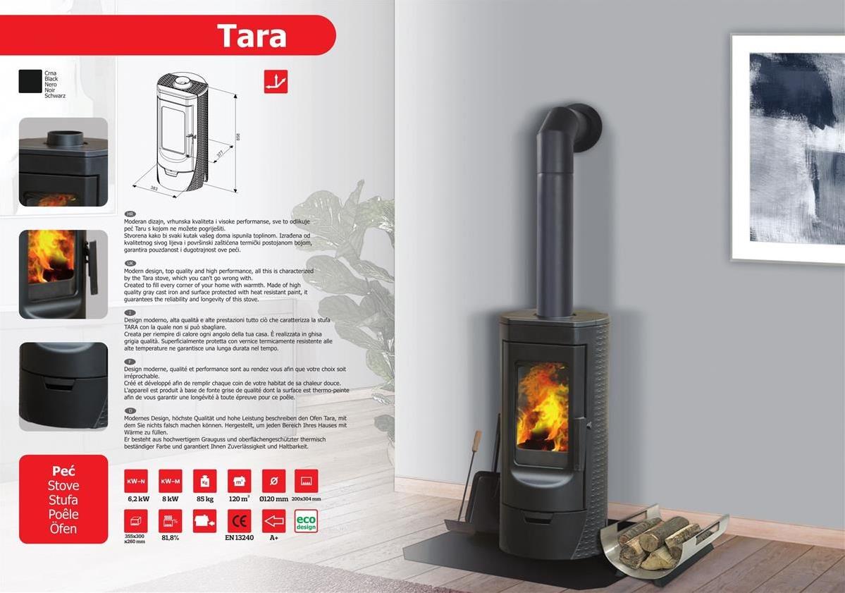 Peć (kamin) na drva 6 - 8 kW - PLAMEN Tara - komplet s dimovodom