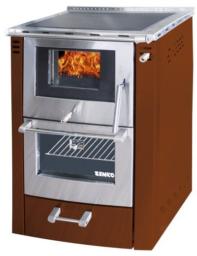 Senko štednjak na drva (kruta goriva) u smeđoj boji, SENKO SG-60 s pećnicom, za zagrijavanje prostorija i pripremu hrane (kuhanje i pečenje).