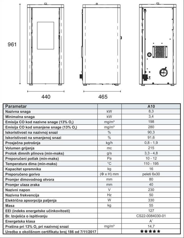 NAPOMENA: Kako bi Vaša nova peć na pelete dugo, sigurno i nesmetano radila, prvo puštanje u rad prepustite ovlaštenim serviserima!