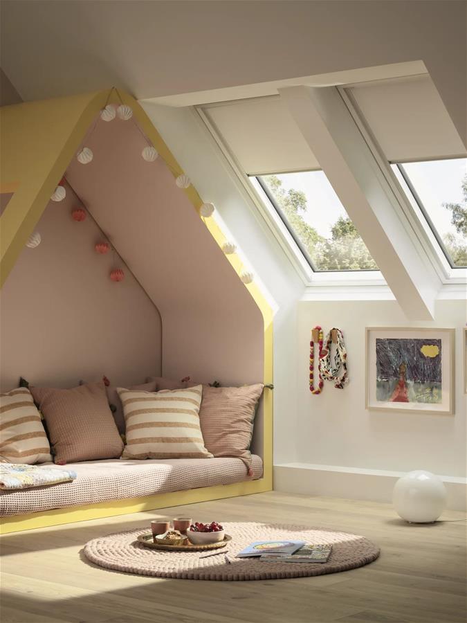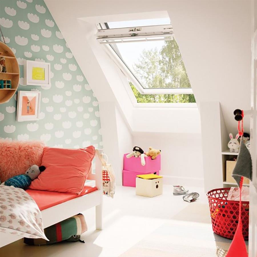 VELUX krovni prozori sa središnjim ovjesom izuzetno su praktični. Smjestili smo ručku na vrh kako biste imali dovoljno prostora za otvaranje i zatvaranje, te smještanje namještaja direktno ispod njih.