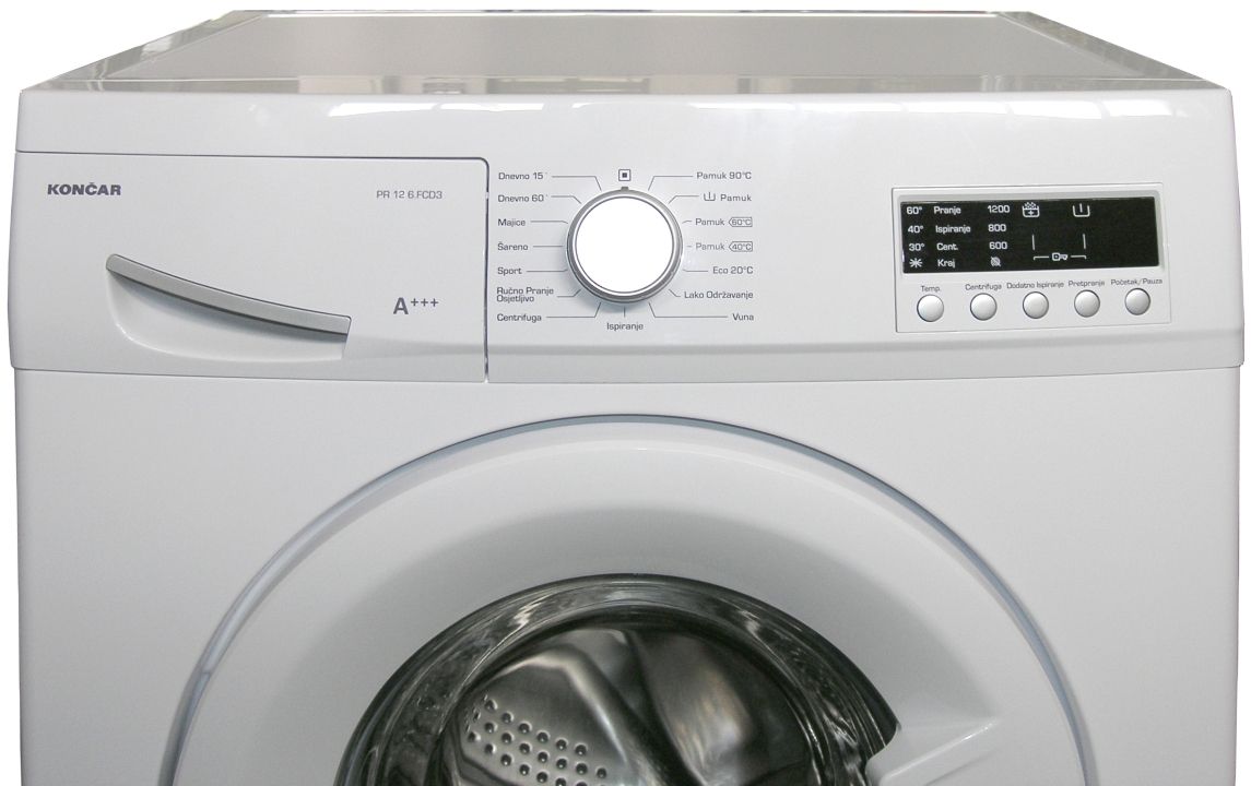 Perilica rublja KONČAR PR 12.6. FCD3 kapaciteta 6 kg i broja okretaja centrifuge 1200 puta u minuti, za besprijekornu čistoću Vašeg rublja.