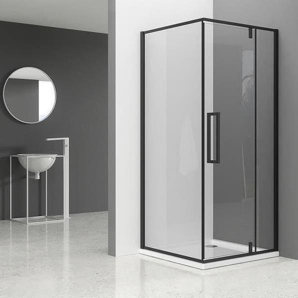 B-line kvadratna tuš kabina opremljena je crnim profilima i prozirnim staklom i vrlo će se lijepo uklopiti u sve stilove uređenja kupaonice.