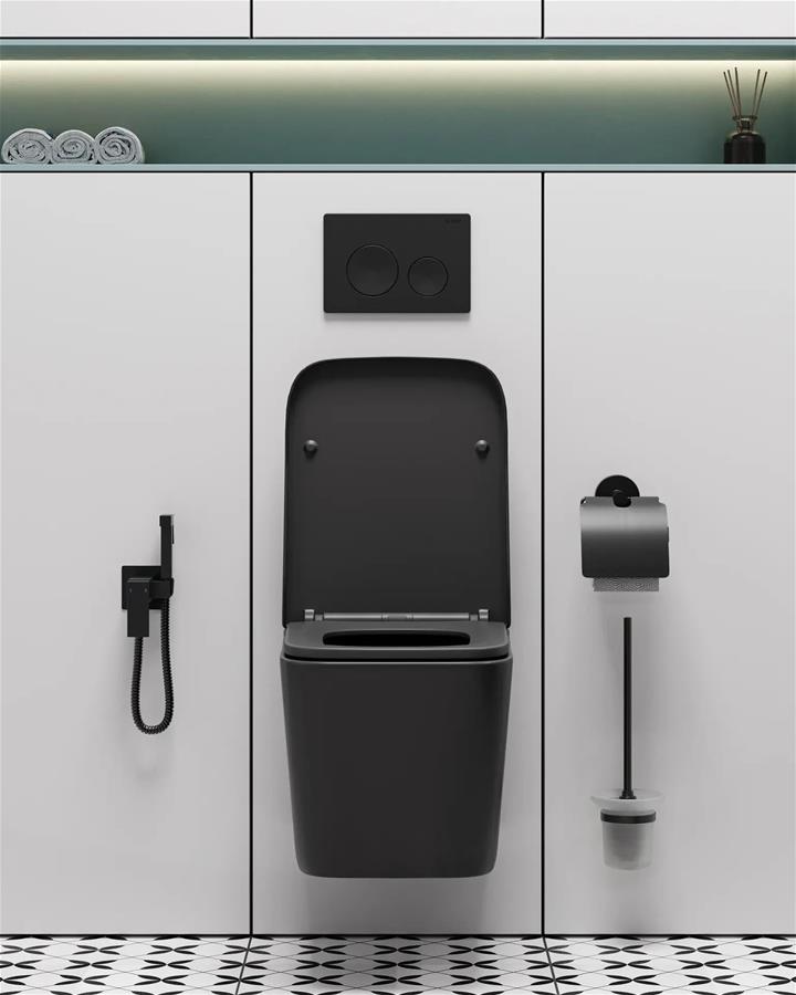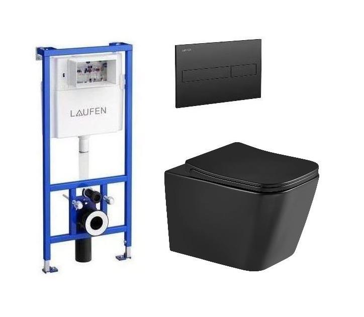 Ugradbeni vodokotlić sa školjkom, daskom i tipkom - LAUFEN Kielle Arkas Vortex Rimfree - crna