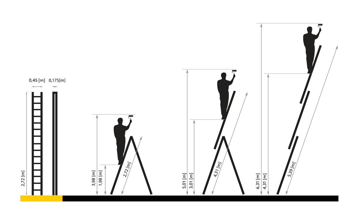 Ljestve za profesionalnu ili kućnu uporabu, mogu se slagati u tri različite formacije. Njihovo sklapanje omogućuje jednostavan transport i skladištenje, a imaju iznimnu visinu dohvata. Izrađene su od čvrste aluminijske konstrukcije što ih čini stabilnim i sigurnim. Protiv klizanja su osigurane specijalnim stopama i protukliznim rebrastim prečkama, a dodatnu sigurnost im pružaju polipropilenske trake.
