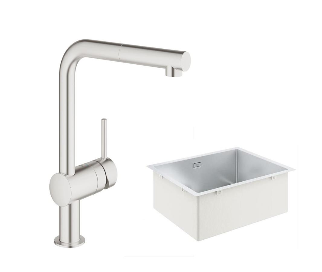 Sudoper inox, komplet s miješalicom - GROHE K 700 Minta SuperSteel - s tušem